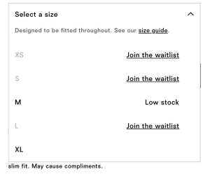 I went to The Reformation online website. Within seconds I found the perfect shirt and a color that would complement me well. Upon clicking “Select a size” I was devastated.